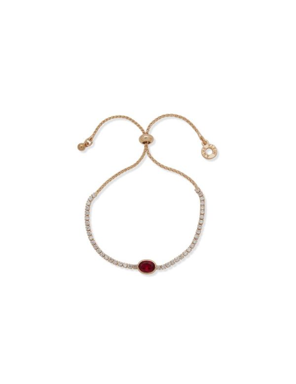 Easy to adjust, our classic slider bracelet consists of round-cut crystal stones and a red oval pendant.