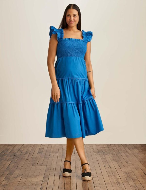 Designed with elasticated smocking, ruffled shoulders, and a tiered midi skirt, this Smocked Ruffle Sleeve Tiered Midi Dress is the perfect addition to a warm weather wardrobe.