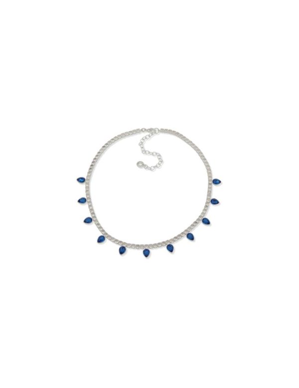 Elevate your style with our chain necklace, adorned with a crystal chain and sapphire pear-shaped stones that elegantly dangle, adding a touch of sparkle and sophistication to your ensemble.