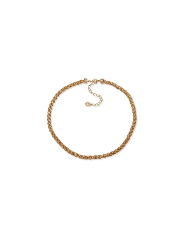 Elevate your style with our Gold-Tone Woven Chain Collar Necklace, a captivating accessory that brings timeless elegance to any neckline.