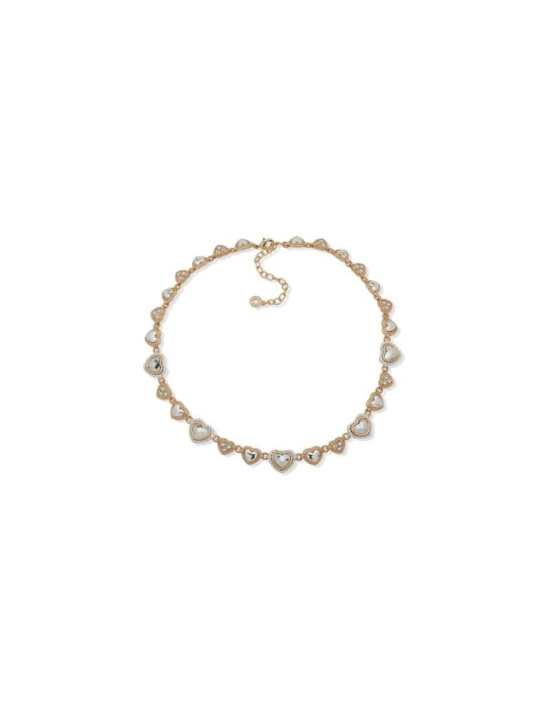 Adorn your neckline with our exquisite collar necklace, adorned with various heart motifs in gold-tone, silver-tone, and shimmering crystals, adding a touch of timeless elegance to your ensemble.