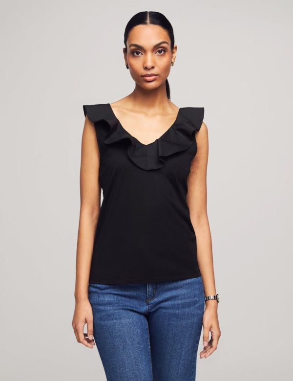 Add a new flattering and stylish blouse to your wardrobe. The Harmony Woven Combo Flounce top is a statement-making top, with flounce detailing around a double v-neckline. A step up from the classic tank, this top is versatile and pairs well with your favorite denim, classy trousers, or a cozy cardigan. Get it in Anne Black or Bright White.