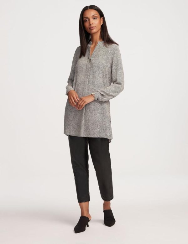 Don’t hesitate to flaunt our classic, split neck style, Nehru Tunic. Designed with side slits for added flare and scattered printed dots for a beautifully loose feel.