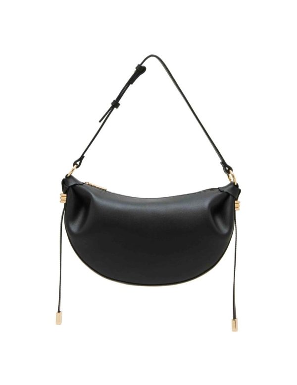 This crescent shaped shoulder bag is all about the details. Features gold metal hardware of both ends of the shoulder straps and has minimal branding for that luxurious look. Add to cart now to get yours today!