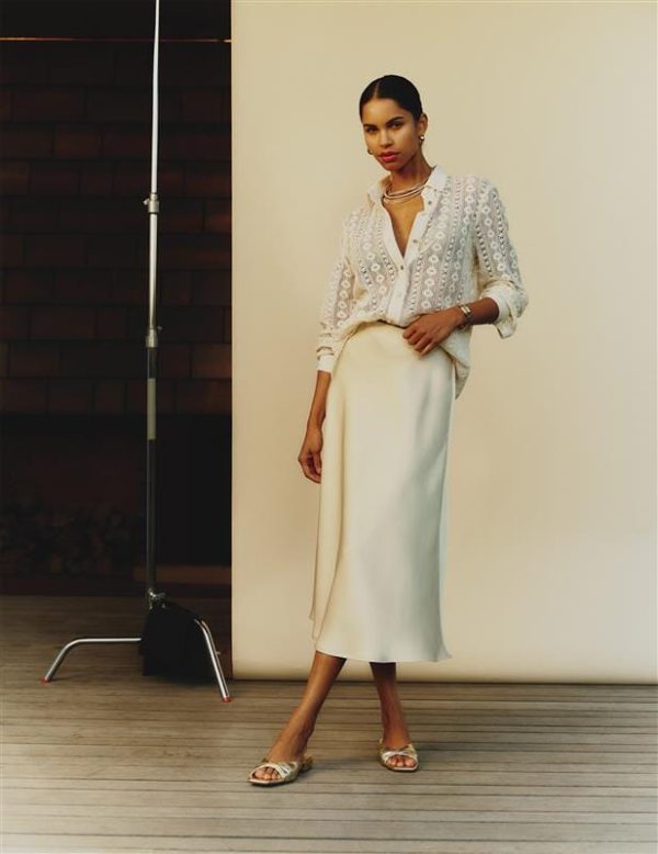 Designed to be fitted at waist with a loose fit, this style is cut on a bias that falls to a mid-length.