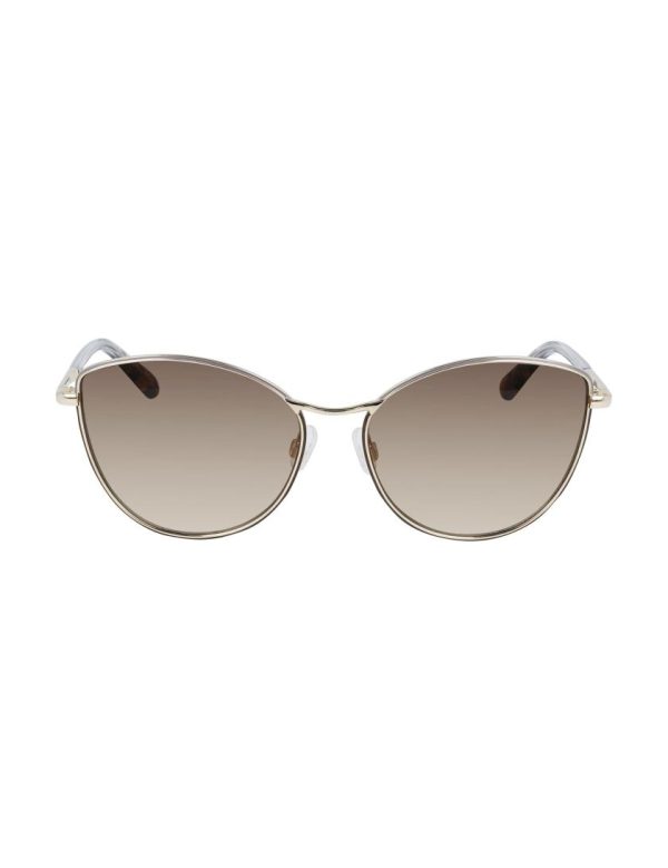 Elevate your eyewear collection with these exquisite sunglasses that redefine sophistication and allure. Exquisitely crafted with a metal frame, the cat-eye silhouette is accentuated by a luxurious two-tone enamel finish and opulent gold detailing. The grey animal gradient temples add a subtle yet striking contrast, while the gradient lenses provide a seamless blend of style and function. Perfectly designed for those who appreciate the finer things in life, these sunglasses are an essential accessory for the modern woman who navigates her world with elegance and grace.