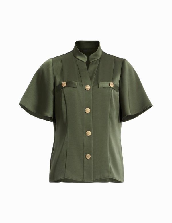 - Emphasizes the arms with delicate flutter sleeves for a feminine touch.