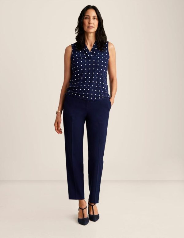 Designed with a v-neck front in a casual silhouette, this Triple Pleat Top is perfect for a transitional weather wardrobe. The style is sleeveless and falls to hip length.