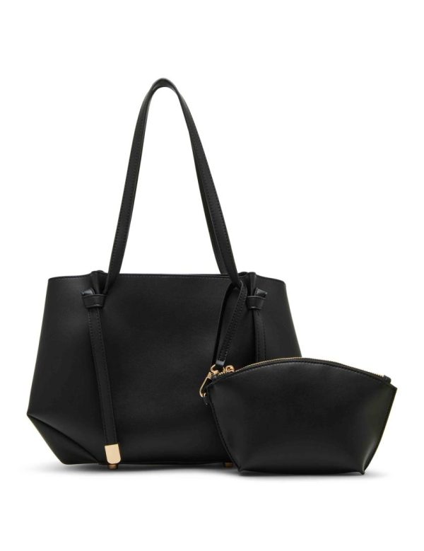 Elevate your style with this chic tote bag. Perfect for casual outings or on the go. It’s spacious and will fit your cellular device, keys, wallet and more. Features gold metal hardware on both ends of the shoulder straps and has minimal branding.