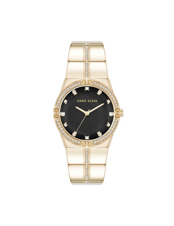Sparkling crystals on the dial and bezel add a touch of glamour to this elegant bracelet watch. A captivating line of crystals runs along the band, and a faceted lens enhances its brilliance, this timepiece effortlessly stands out.