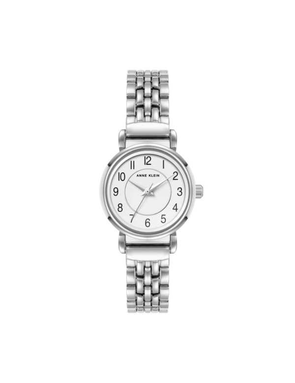 There’s just something about classic, time-honored style. This traditional timepiece features a round case and bezel with white dial and Arabic numeral markers.