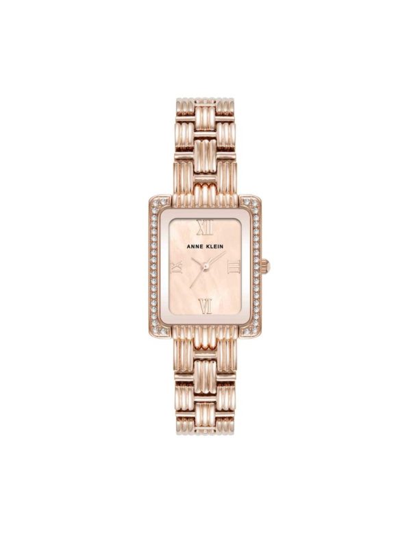 Featuring sparkling crystals and a sleek rectangle shape, this watch exudes refined elegance. Its ribbed link bracelet, with a subtle grid pattern, adds a touch of modern sophistication to the classic design.