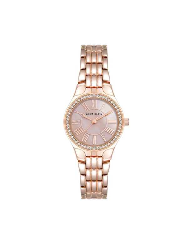 Embrace timeless style with this sophisticated timepiece. Boasting a mother-of-pearl dial and a crystal-encrusted bezel, this fashionable watch is effortlessly sophisticated.